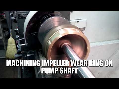 Here we are showing the wear-ring on an impeller pump shaft being machined. Over time its shape is lost or degraded, and it must be machined back into shape.